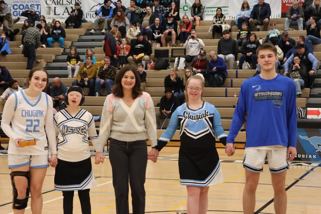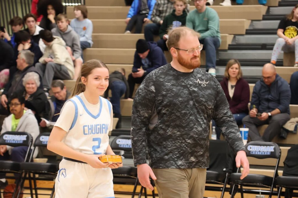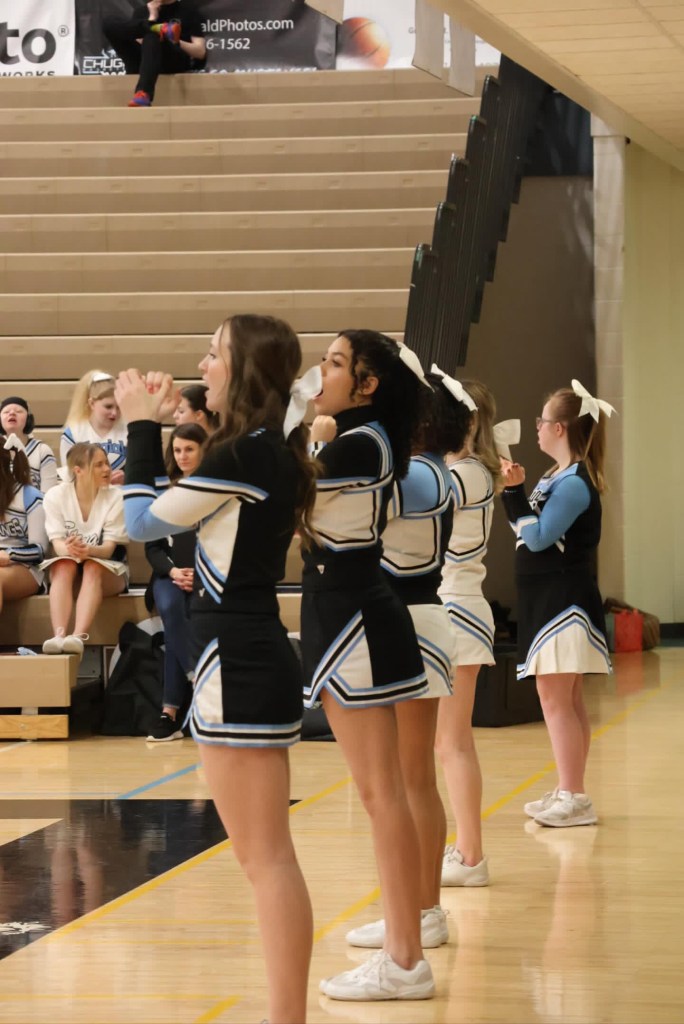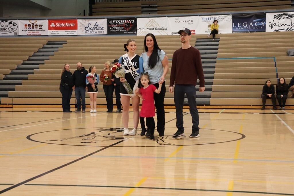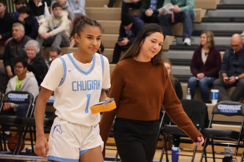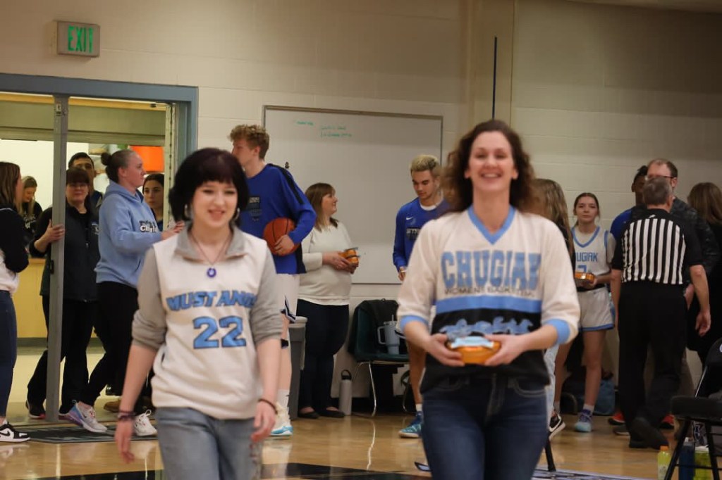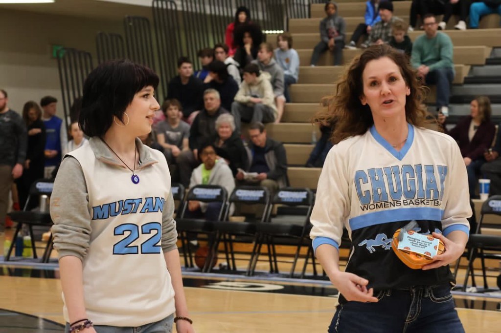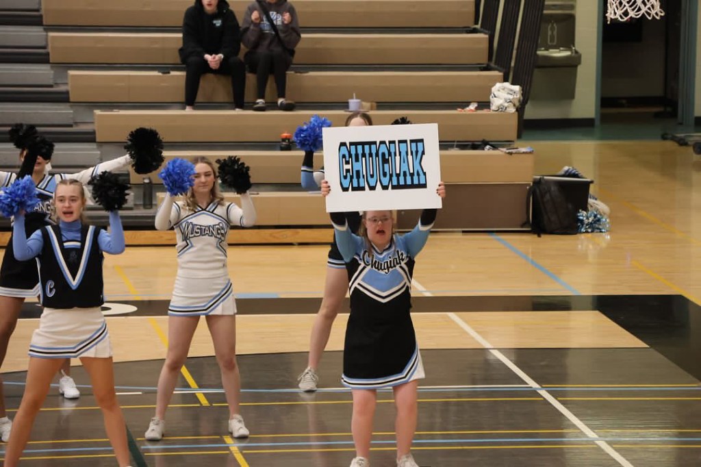 THROWBACKS + APPRECIATION: Teacher Appreciation night for Basketball was held in February, with the theme for the game being “Throwbacks.” Cheerleaders dressed in a variety of retro uniforms from the vaults, and many vintage Chugiak peices were seen in the crowd. Photos by Bella and Caleb.