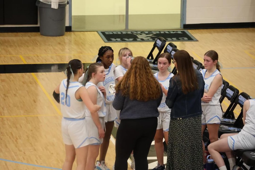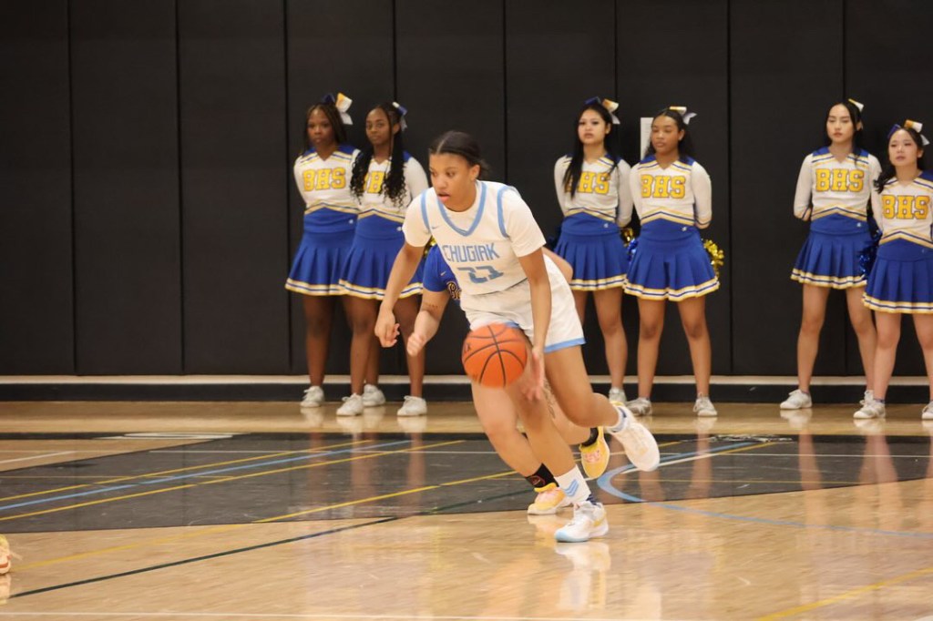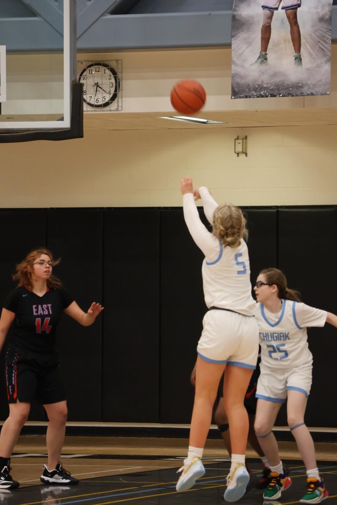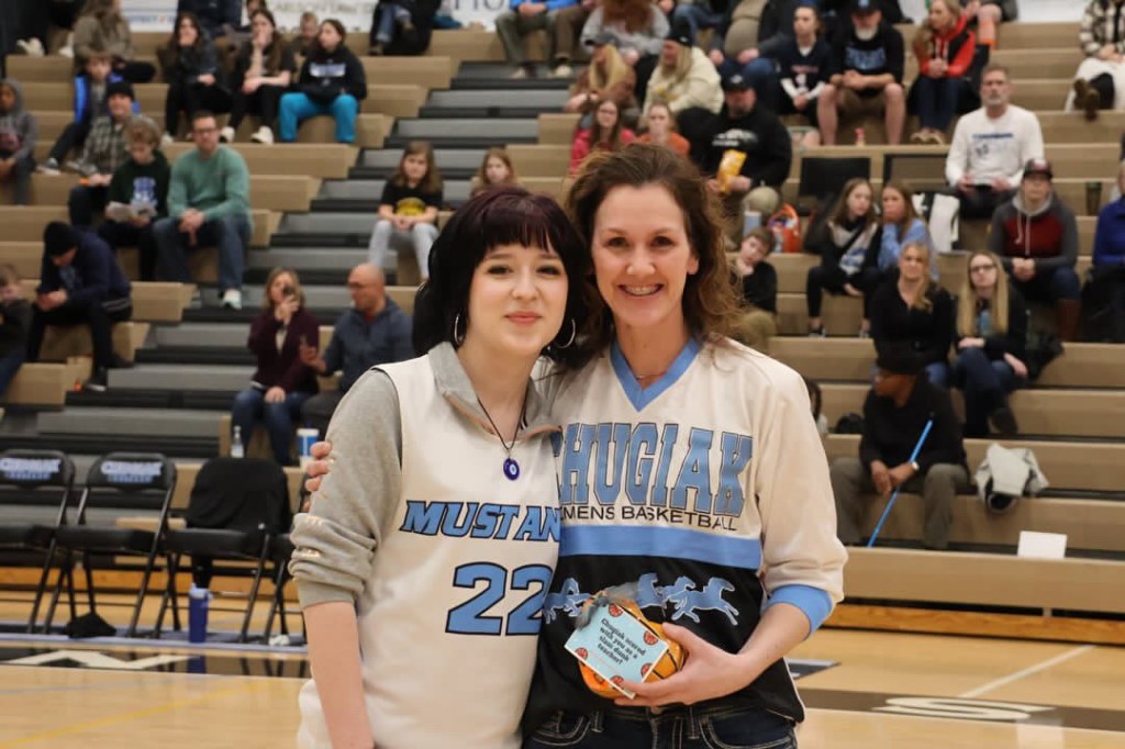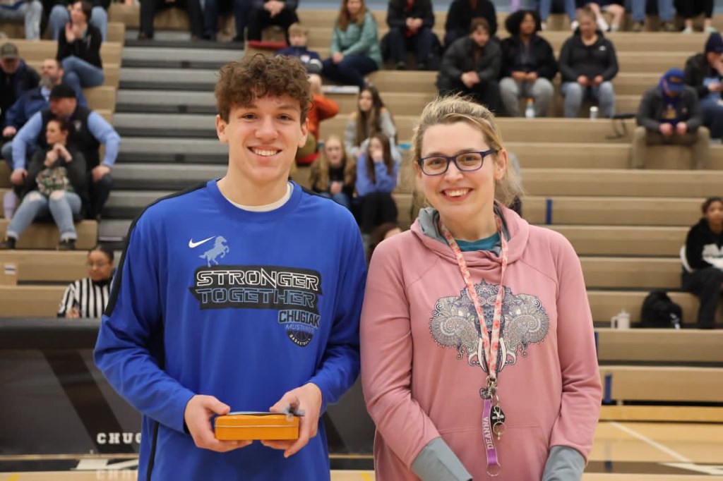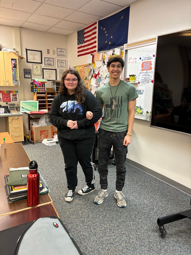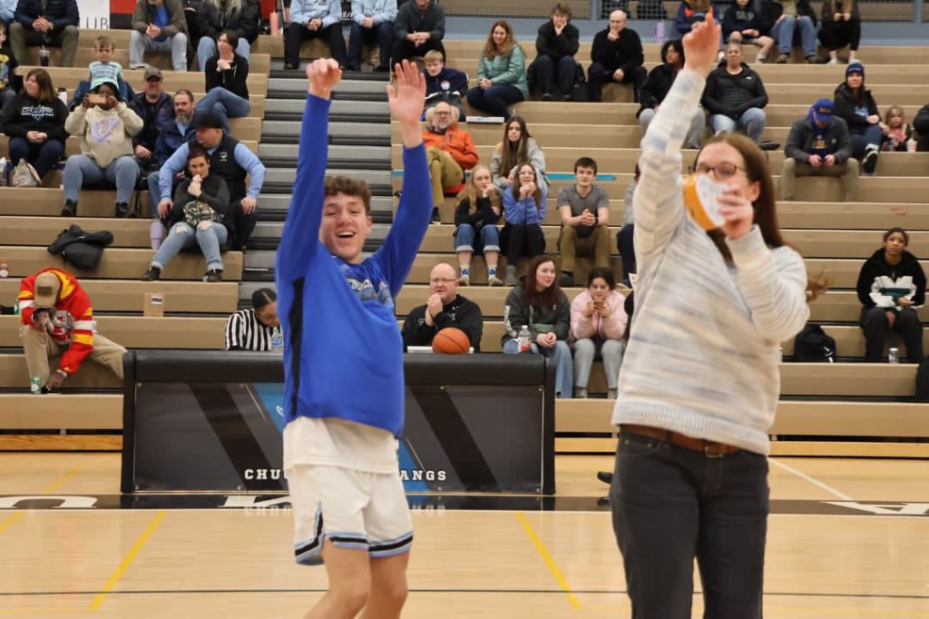 THROWBACKS + APPRECIATION: Teacher Appreciation night for Basketball was held in February, with the theme for the game being “Throwbacks.” Cheerleaders dressed in a variety of retro uniforms from the vaults, and many vintage Chugiak peices were seen in the crowd. Photos by Bella and Caleb.