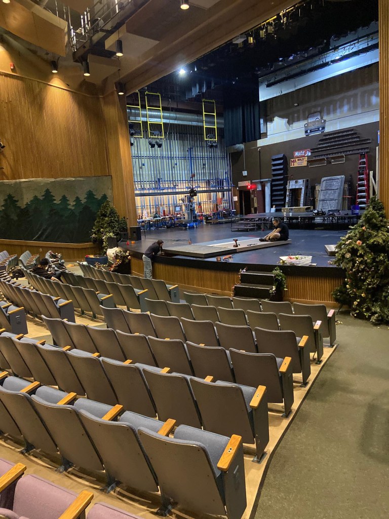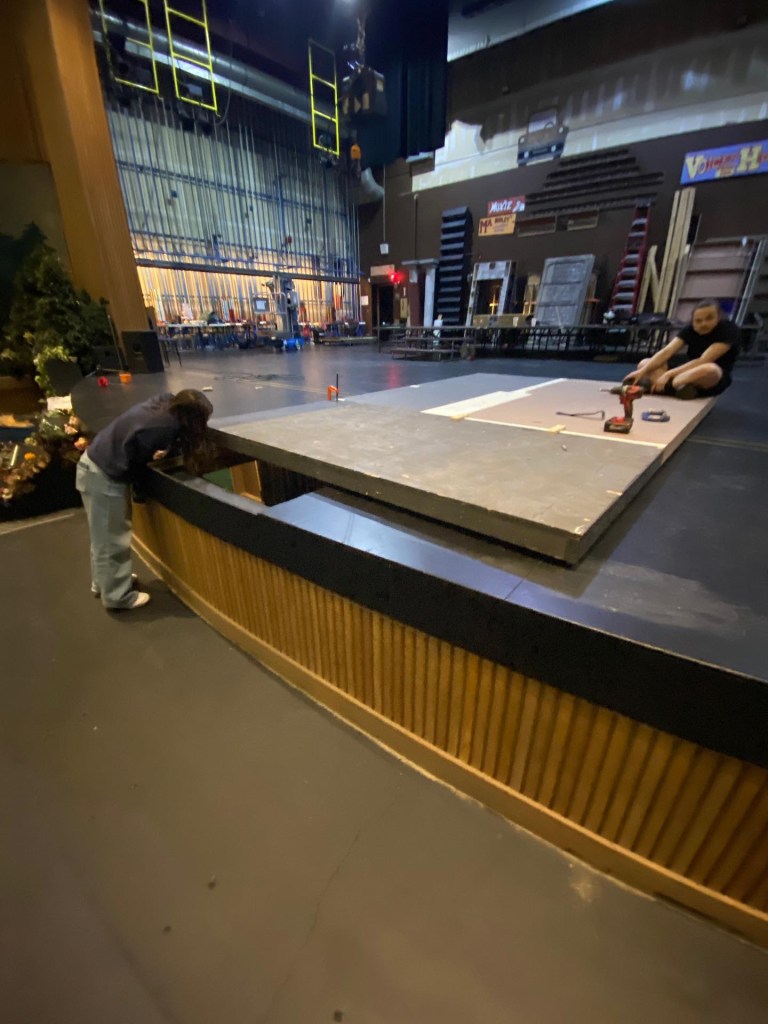 MUSICAL TECH: Tech and stage crew with help from the Advanced Play Production class built an incredible set for the Beauty and the Beast musical. Photos by Kelsyn.