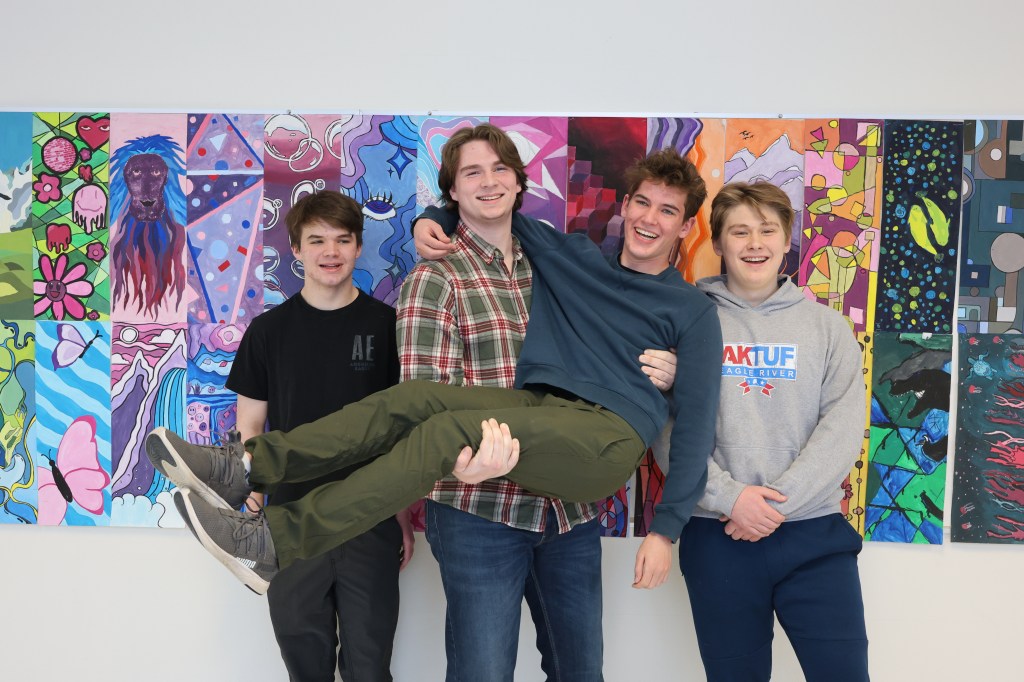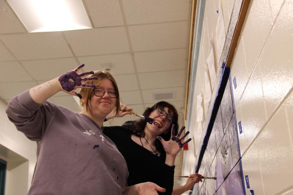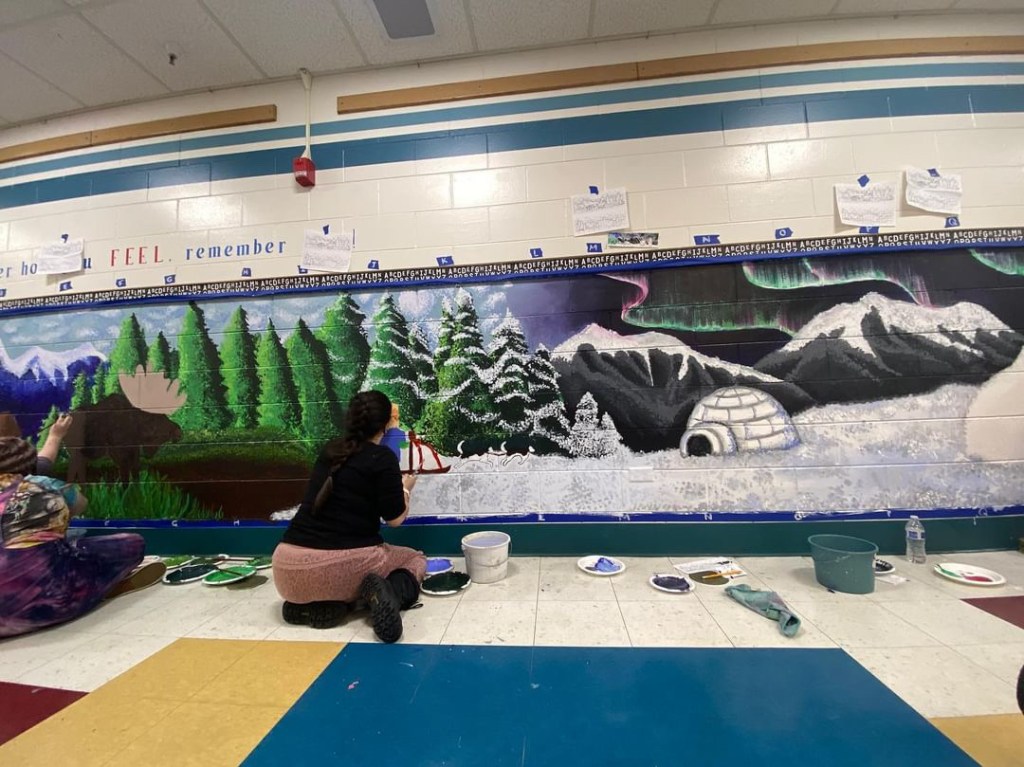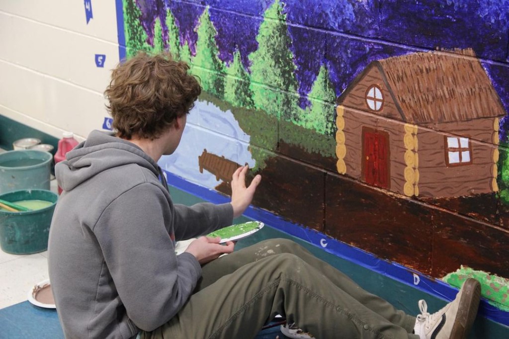 BEST OF ALASKA, ON A WALL, THANKS TO A WALL: Art students traveled to Homestead elementary in February to paint a mural in the main hallway for students to enjoy. Photos by Kelsyn.