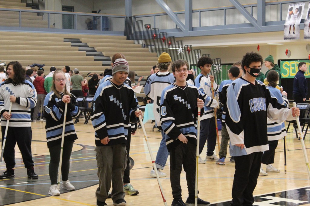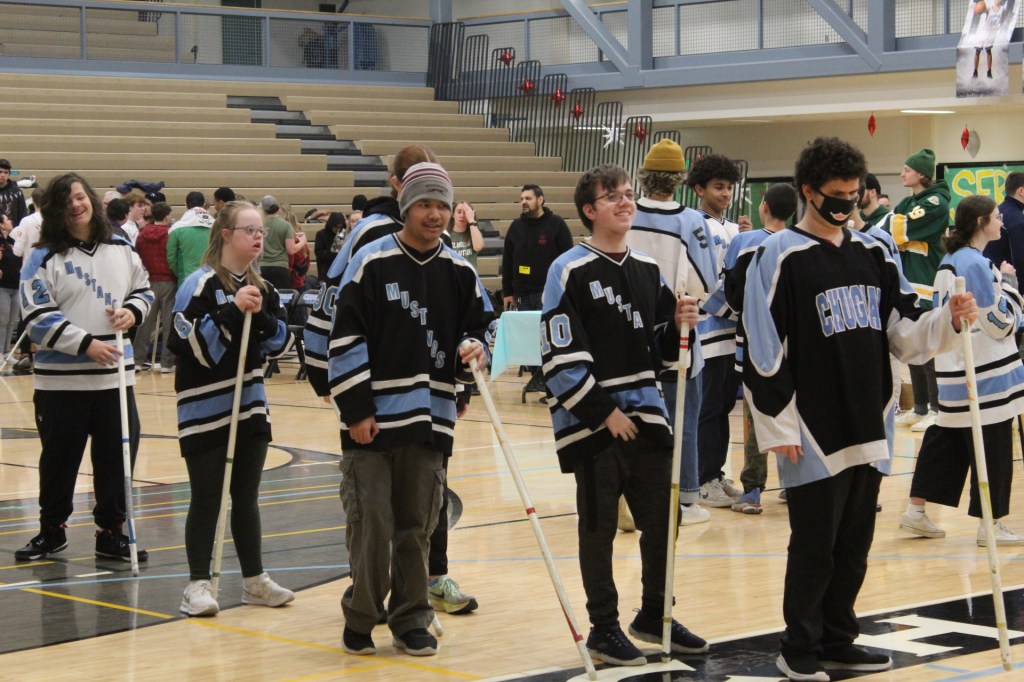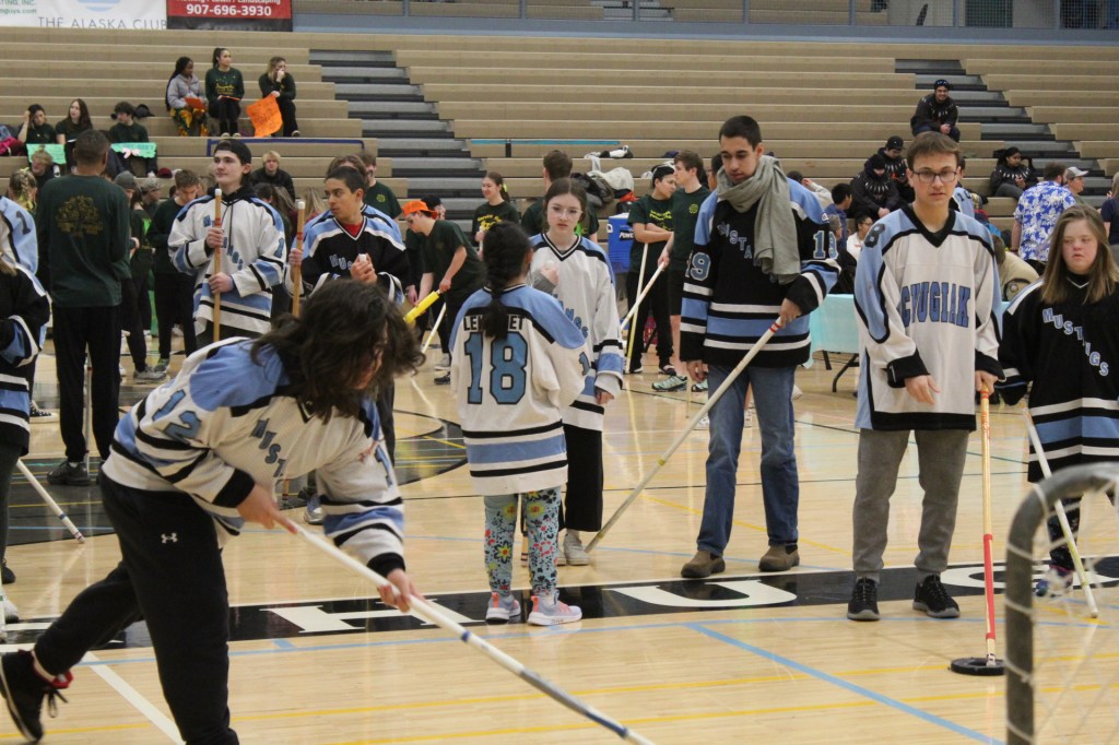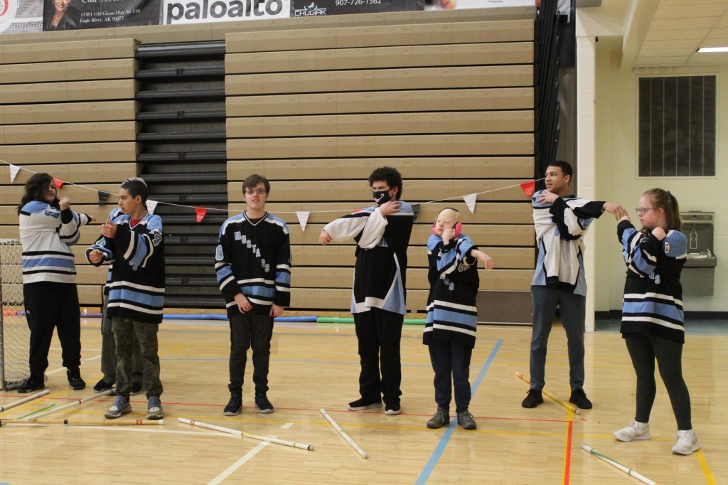 UNIFIED FLOOR HOCKEY: A super fun tournament was hosted at Chugiak on Feb 8th with representatives from several ASD schools. Photos by Abigail.