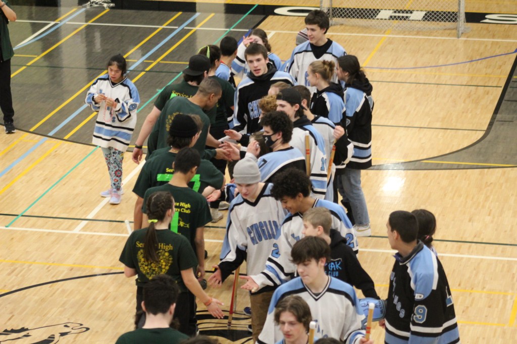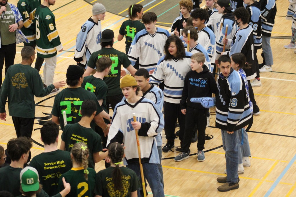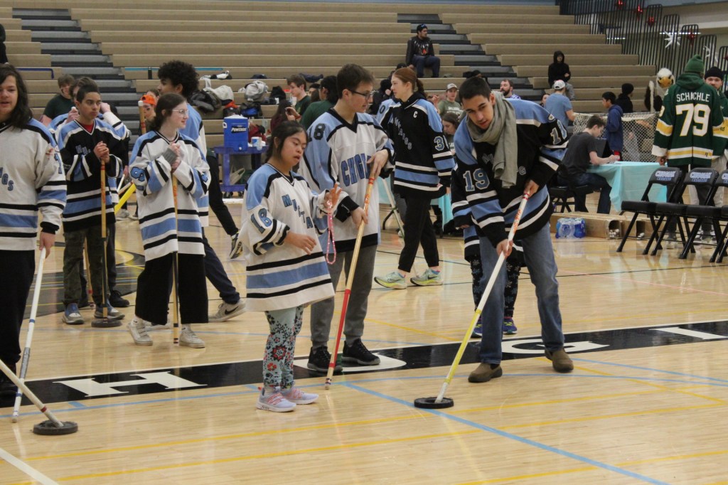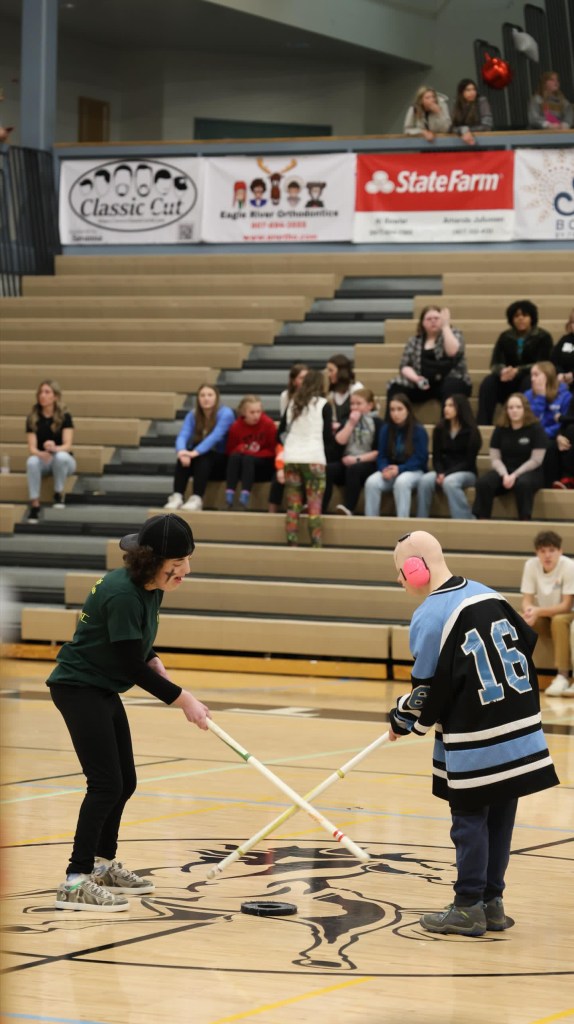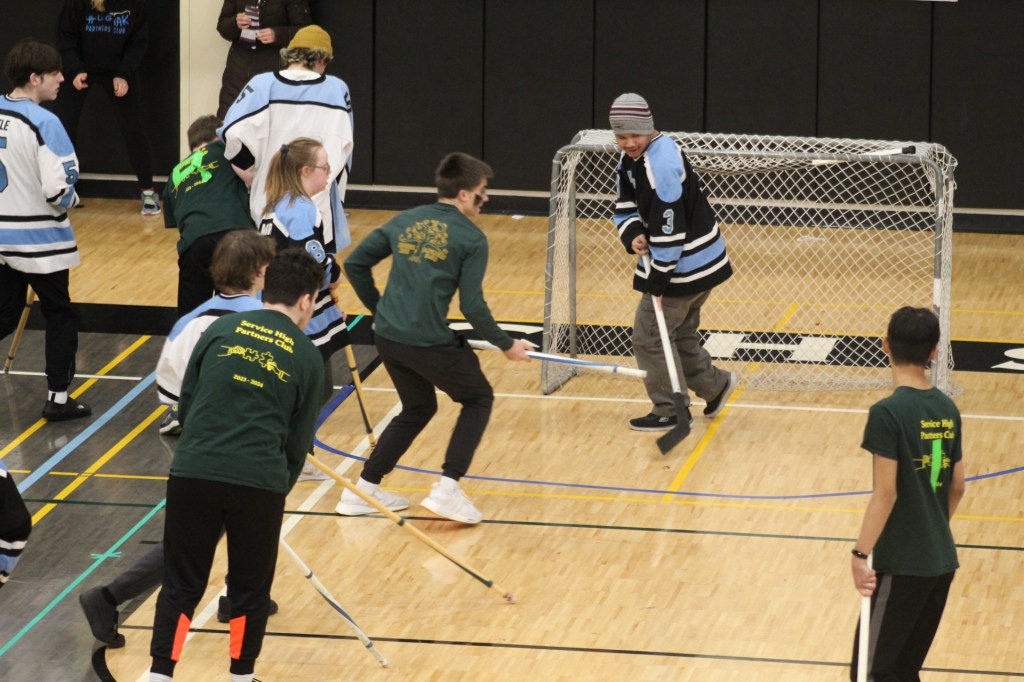 UNIFIED FLOOR HOCKEY: A super fun tournament was hosted at Chugiak on Feb 8th with representatives from several ASD schools. Photos by Abigail.