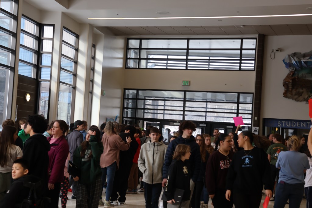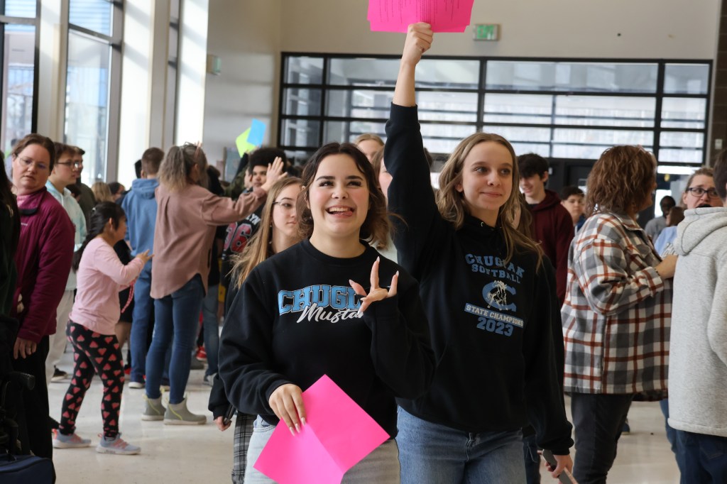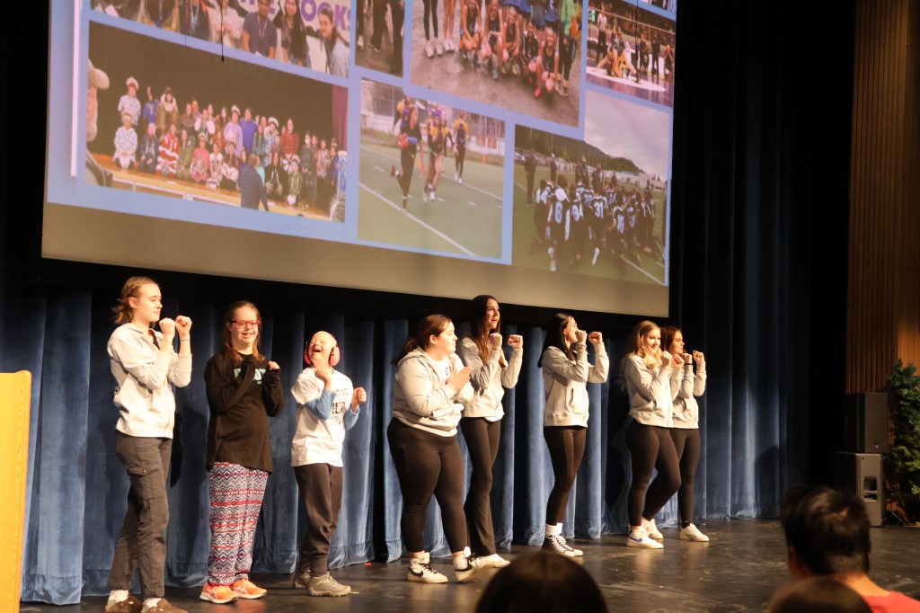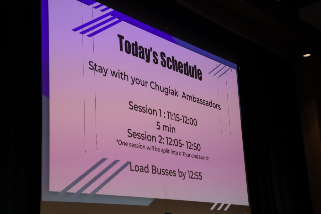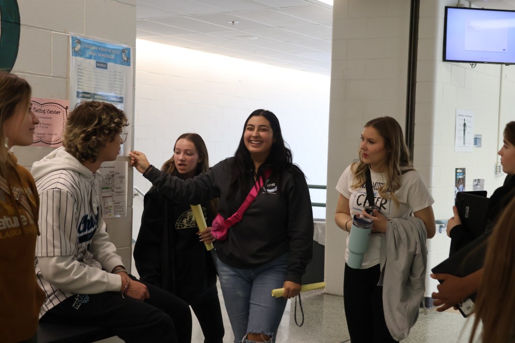 WELCOME, FUTURE FRESHMEN: Ambassadors and counselors welcomed future freshmen to Chugiak last week, with support from Chugiak Cheer, Partner’s Club, and Pro Start. Photos by Solvieg, Abie, Kyra, and Chloe.