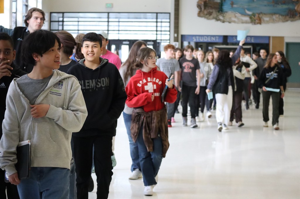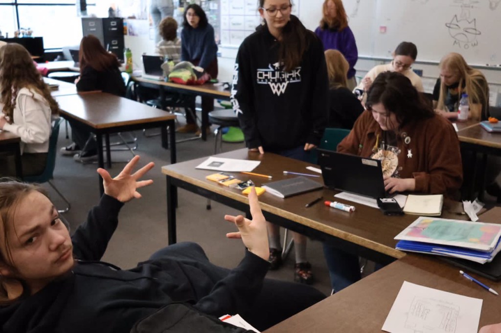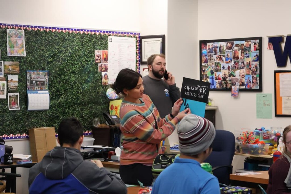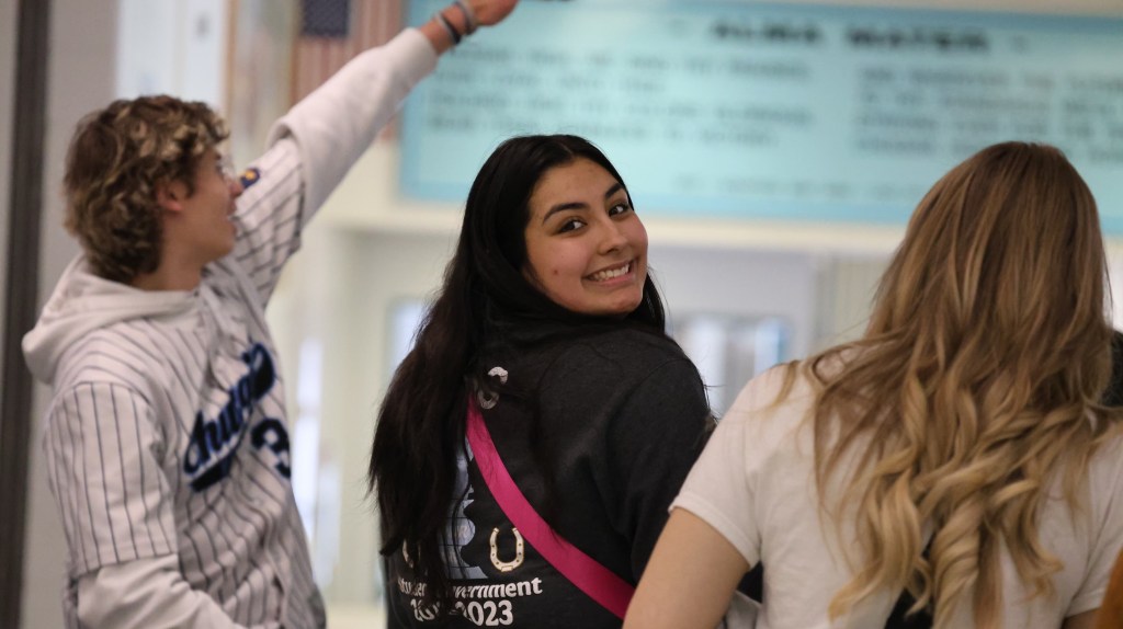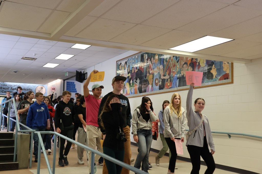 WELCOME, FUTURE FRESHMEN: Ambassadors and counselors welcomed future freshmen to Chugiak last week, with support from Chugiak Cheer, Partner’s Club, and Pro Start. Photos by Solvieg, Abie, Kyra, and Chloe.