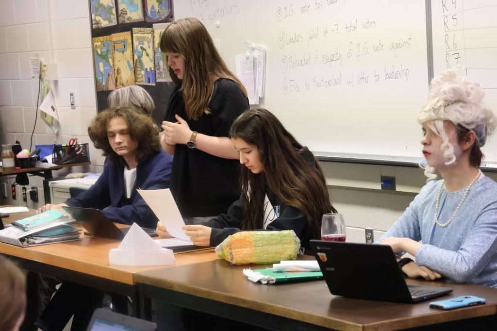 OFF WITH THEIR HEADS: A French and Haitian Revolution simulation took place in Ogden’s class in Janaury photos by Kyra.