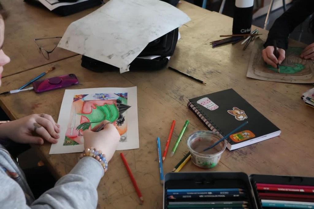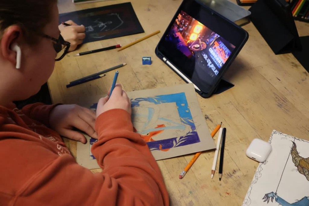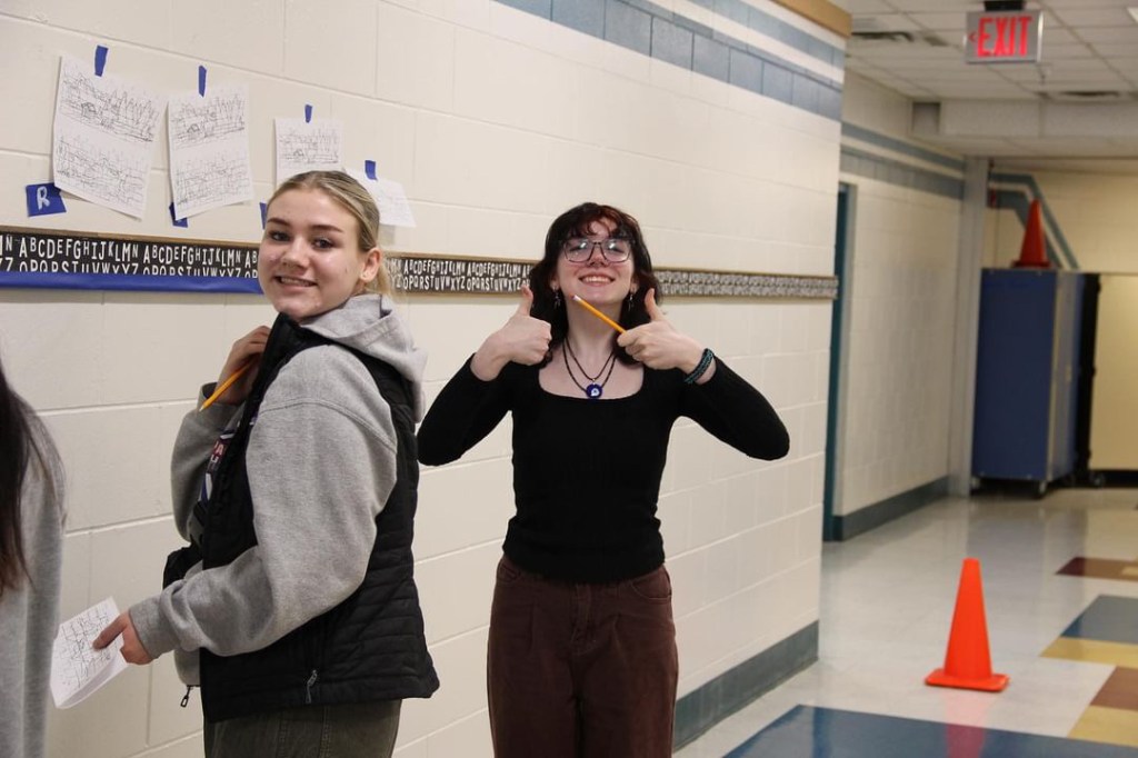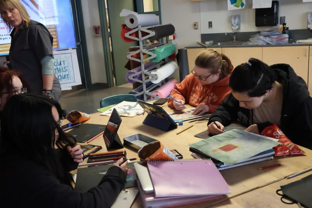 ARTSY: Photos of 6th hour art by Skylar and Ava.
