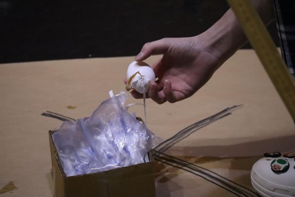 EGGY AMPED: Amped on Algebra held an egg drop in February. Photos by Luke and Jacob.