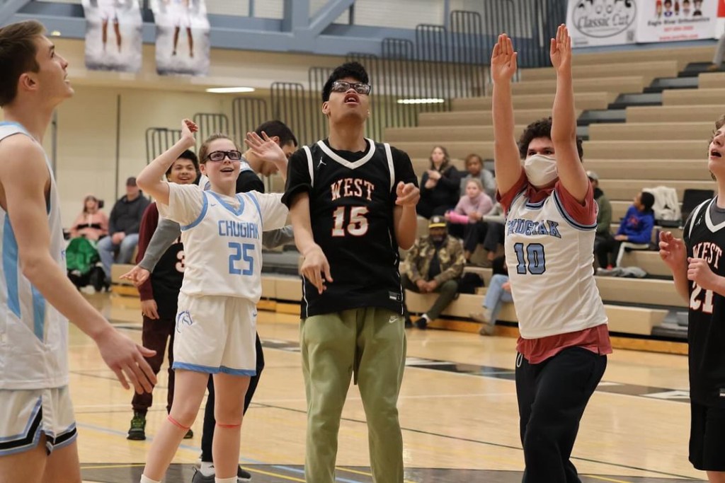 PARTNER’S CLUB BASKETBALL: Chugiak Partner’s Club squared off against West’s partner’s club for a Unified Basketball game on 2/20. Special jerseys were made and raffled off as fundraisers for each team’s respective club. Photos by Scout.