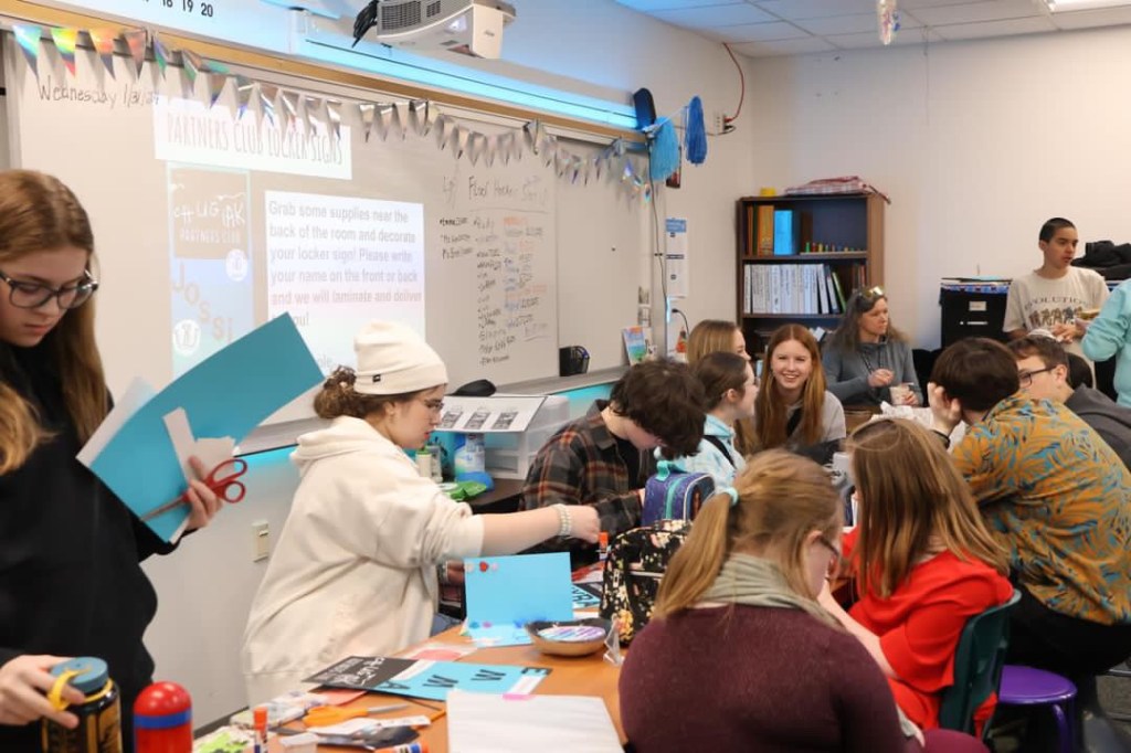 LOCKER SIGNS: Partners Club made locker signs in January. Photos by Kyra.