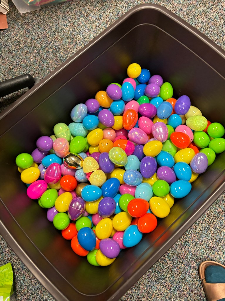 EASTER BUNNY TIME! Student Gov celebrated WACKO being over on Monday by having a visit from the Easter Bunny, with over 400 eggs hidden in the student gov suite. They restocked the eggs and hid them for Yearbook staffers to have their own egg hunt on Thursday to celebrate the Yearbook being submitted on time. Photos by Avian.